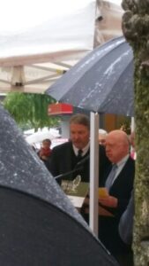 –Ofrenda floral en la escultura a George Steer a las 11:15