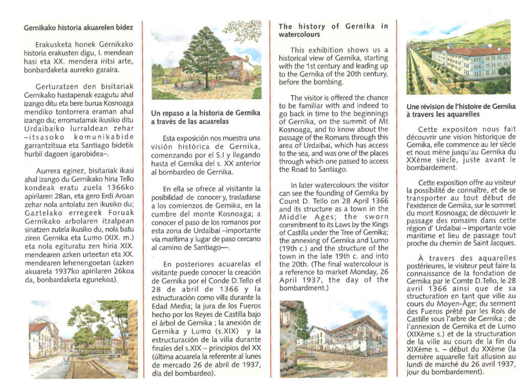 This exhibition shows us a historical view of Gernika, starting with the 1st century and leading up to the Gernika of the 20th century before the bombing.