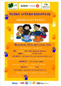 Gernikako Bakearen Museoko Hezkuntza Arloak umeei zuzendutako koloniak Pazko asterako antolatu ditu martxoaren 29tik apirilaren 1era. Umeek ondo pasatzeaz gain, errespetuan, elkarbizitzan eta interkulturalitatean heztea da bere helburu nagusia.