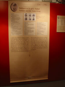 Tanto en su faceta de escritora como en la de conferenciante, Bertha von Suttner fue la máxima figura del movimiento pacifista internacional. A pesar de las tendencias de su época luchó implacablemente contra el fanatismo nacionalista, contra las agresivas consignas de los militares, contra quienes incitaban al odio y contra el antisemitismo. Reconoció el potencial destructivo de aquellas ideologías y profetizó: La próxima guerra será más terrible que cualquiera de las anteriores (…)