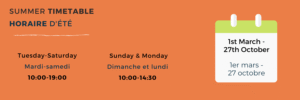 Du 1er mars au 27 octobre, le musée ouvre tous les jours :