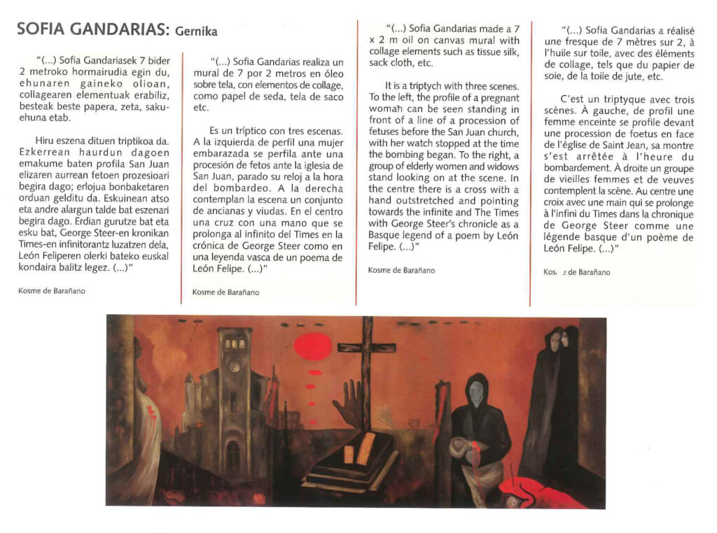 Dans cette dernière on a voulu offrir une vision historique des faits qui ont eu lieu ce 26 avril 1937, lorsque la ville symbolique et pacifique de Gernika a été bombardée et complètement détruite…