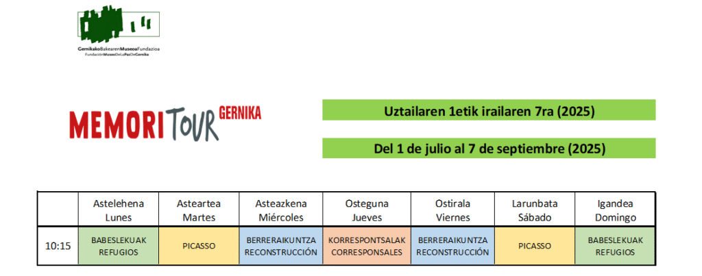 El Museo de la Paz de Gernika ofrece el programa ‘Memoritour Gernika’ compuesto por varias rutas guiadas en las que se da a conocer el patrimonio memorial, simbólico, histórico y cultural de la villa.