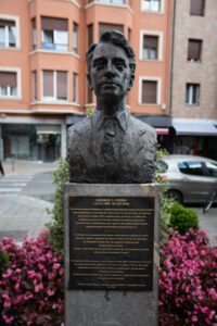 El recorrido comienza fuera del Museo de la Paz de Gernika y se visitan espacios como Iglesia Andra Mari, el Pasileku, el Ferial y el busto de G. Steer.
