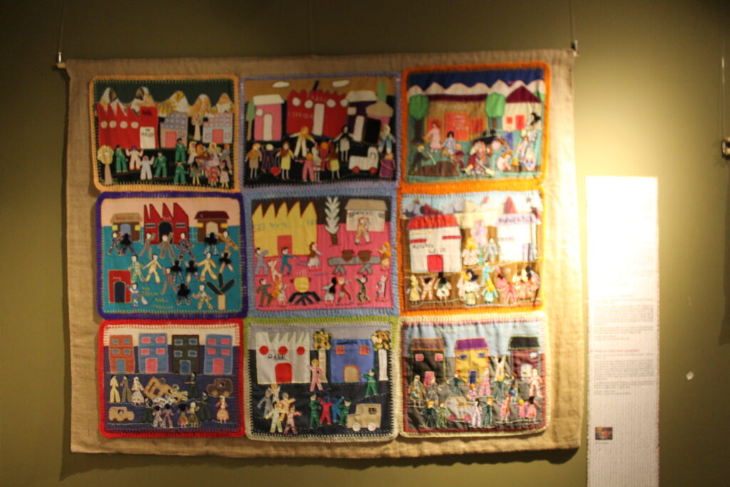 El conjunto de arpilleras y otras piezas textiles de esta exposición COSIENDO PAZ: Conflicto, Arpilleras, Memoria, procede de Irlanda del Norte, Inglaterra, España, Chile, Perú, Argentina, Zimbawe, Alemania y Colombia. En ellas las mujeres relatan sus experiencias en contextos de conflictos y de violación de los derechos humanos…