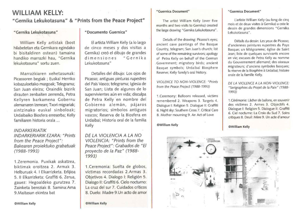 El artista William Kelly (a lo largo de cinco meses y dos visitas a Gernika) creó el dibujo de grandes dimensiones Gernika lekukotasuna…